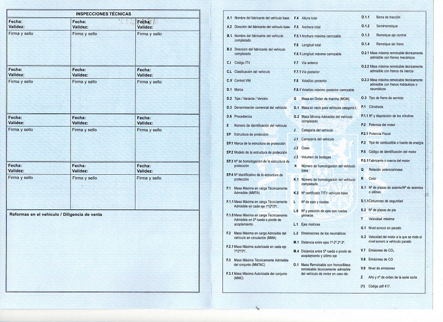 8. Peso en vacío y máximo autorizado: El primero es el peso del coche sin nadie ni nada dentro. El segundo es el peso máximo que puede llevar, incluyendo pasajeros y carga.
