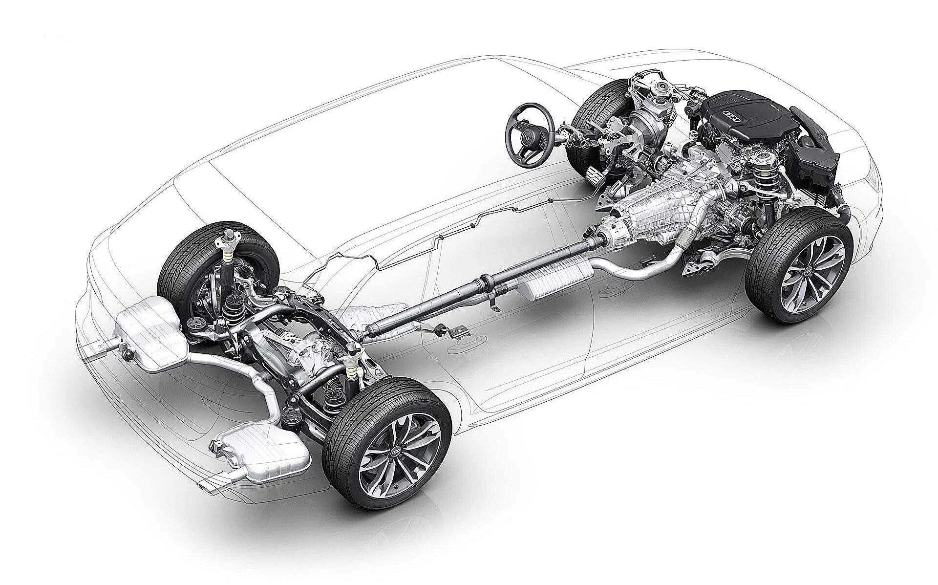 4. Árbol de transmisión: Transmite la potencia desde la caja de cambios al diferencial. En los coches con tracción delantera, este elemento puede no ser necesario porque la caja de cambios y el diferencial están integrados.