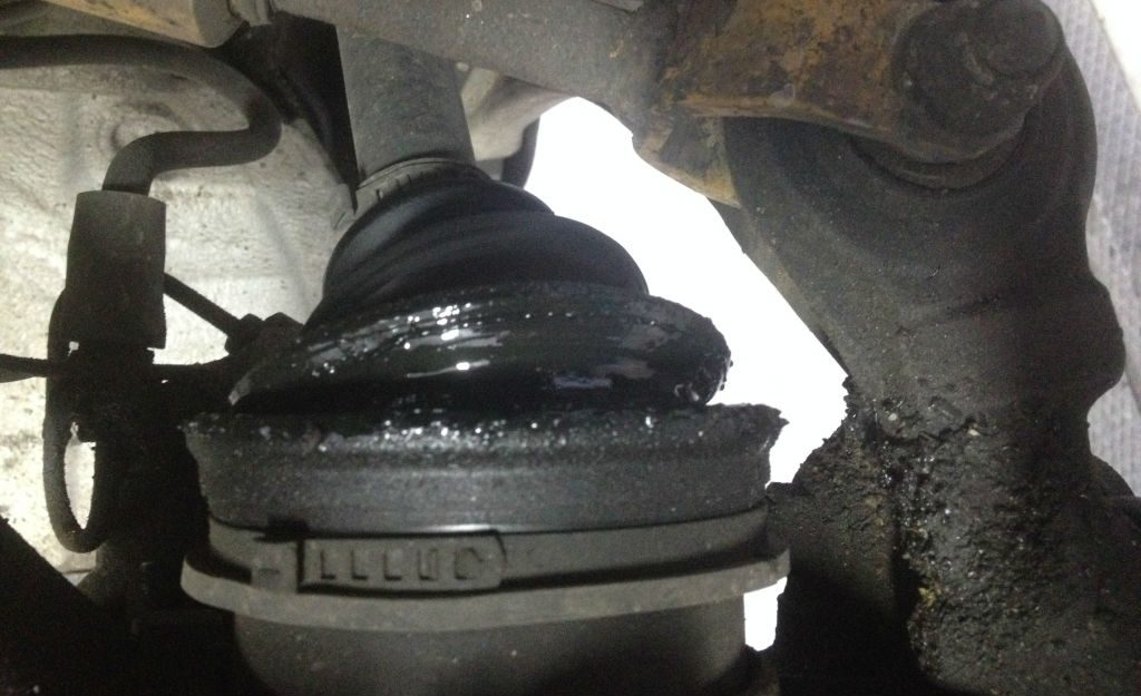 4. Fuga de grasa: Echa un vistazo debajo del coche. Si ves grasa en el interior del neumático o en los bajos del coche, el fuelle del palier podría estar roto. Esto permite que la grasa se escape y el palier quede expuesto a suciedad y agua, lo que acelera su desgaste.